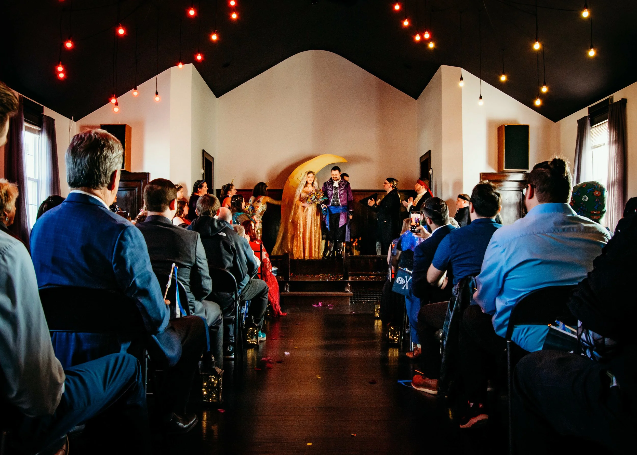 Indoor & Outdoor ceremony and reception space. Ceremony space will doubt as a dance floor for the reception.